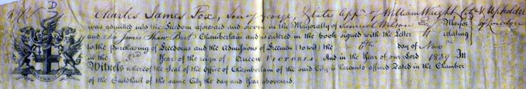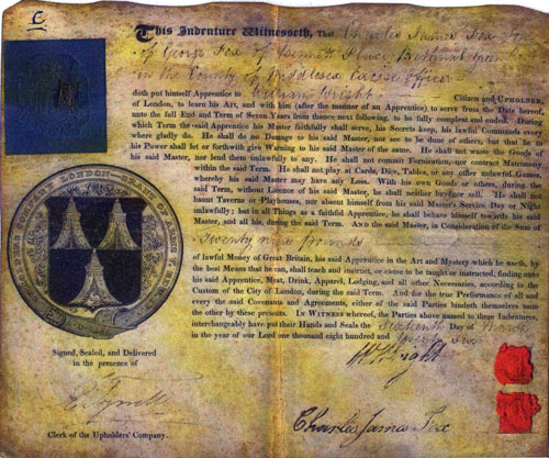 Charles James Fox's parents were George Fox and Mary George. He was born in Bethnal Green on 17 October 1811. His father George worked for the Excise, and paid £29 for his son to apprenticed as an Upholder in 1826 when Charles James was 15.
