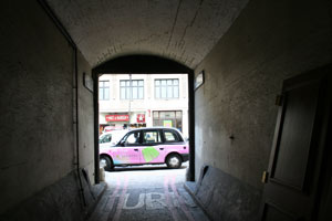 See right: The entrance is under the pub.