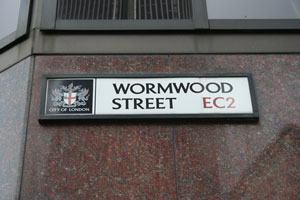 1875 directory: Fox, Thomas and Co. Upholsterers and decorators, 77, Bishopsgate within, 1-5 Peahen Court. Helmet Court (South of Wormwood Street, also demolished.) 12 Wormwood Street. Wormwood street has been completely reconstructed.