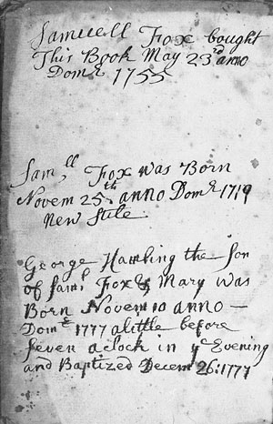 Mary- daughter of Saml & Mary Fox was born Jany 1st 1776 about one a clock in the morning & Baptised Januy 29 1776