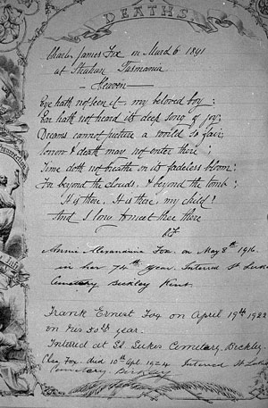Frank Ernest Fox Born July 7th 1872 Christened at St Johns Church Blackheath SE