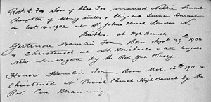Annie Gertrude Fox, Born March 6th 1864 Christened at St Pauls Church, Balls Pond. N.