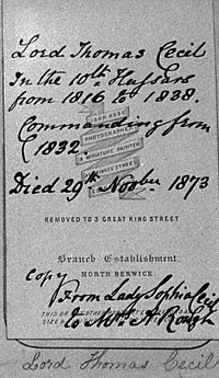 Agnes had to find some work and looked after Lord Thomas Cecil until he died in 1873.