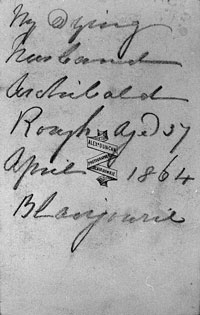 “Buried in ? Aliphants ground Blairgowrie Church G ? Saturday 23 at 3pm 1864. He was 35 years and 4 months when he died. Agnes L Rough.”