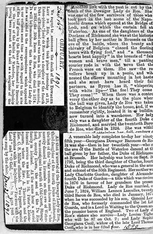 On left: Sophia's sister Lady de Ros. The back shows her obituary in 1891.