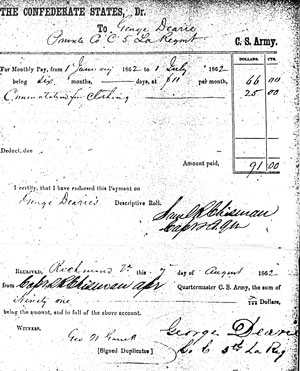 George was the eldest son of Richard Dearie and Elizabeth Hogg. His parents married in London in 1838 and he was born in 1841. His Confederate army papers say he was born in London. The 1880 US census says he was born in Pennsylvania. His burial papers say he was born in Philadelphia.