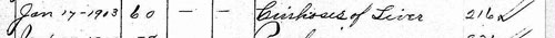 Wilke-Barre Times January 31, 1903, Those Who Died the Past Month Cirrhosis of liver - George Dearie, 60 years, 26 Sullivan street.