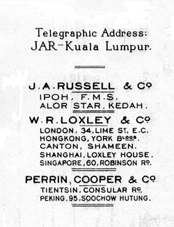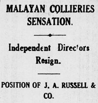In September J. A. Russell and Co reported as managing agents of the Bakau Tin Company, which had made a profit and Bob Russell was still a director of Amalgamated Malay Rubber, which was in a strong financial position.