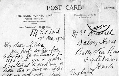In August ship passengers lists noted that the following passengers were leaving Singapore by the Ranpura on August 21 for Penang, Colombo, Bombay and Europe. Mr. J. A. Russell and Miss. K. S. Archer.