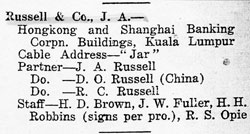 The 1932 directory of rubber estates showed that J. A. Russell ran a 1,750-acre estate in Johore.