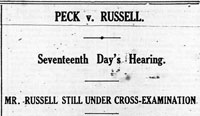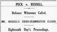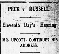 On 12, 13 and 14 June the Peck - Russell case was taken to the Appeal Court, where Mr. Peck’s solicitors argued that Mr. Justice Farrer-Manby’s decision was wrong