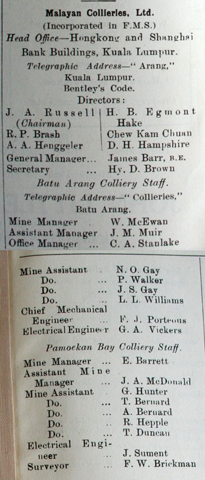 Telegraphic Address—“Collieries” Batu Arang