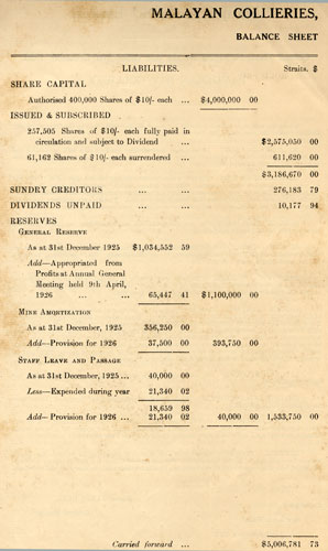 From: MALAYAN COLLIERIES LIMITED REPORTS & BALANCE SHEETS AND PROCEEDINGS AT ANNUAL MEETINGS 1926- 1935