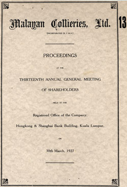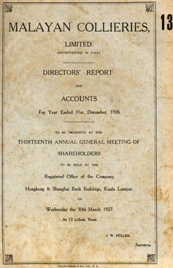 Malayan Collieries Report Accounts and A.G.M. 1927