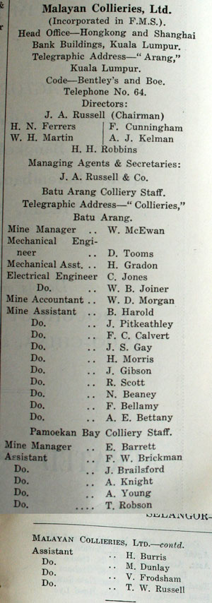 MALAYAN COLLIERIES, LTD., Kuala Lumpur.