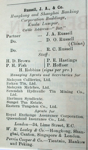 THE MALAY MAIL, TUESDAY, MARCH 25TH, 1924. Minute books and files of the Eastern Mining and Rubber Co. Minutes of Oct. 10, 1922-“Resolved that the appointment of Messrs. Tan Chong Kee and J.A. Russell as directors, which was passed by a resolution in writing by all directors, be recorded.