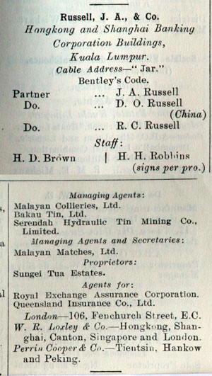 The Straits Times, 8 January 1926, Page 8 SOCIAL AND PERSONAL. Mr. J. A. Russell is expected in Kuala Lumpur about March