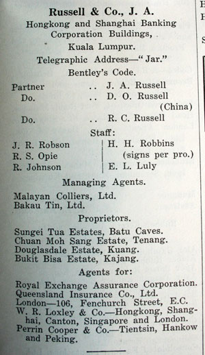 J. A. RUSSELL & Co., Kuala Lumpur.