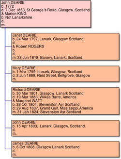 Richard was born in 1801, the eldest son of John Dearie a weaver, in Glasgow, Scotland.