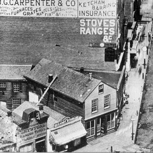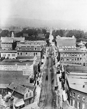 Below: 57 Public Square in Wilkes-Barre, the corner of the west side of Public Square and West Market Street ; listed as Dearie's Hotel in 1889, and known for many years afterwards as "Dearie's Corner"