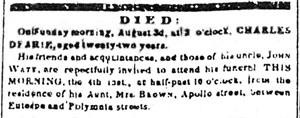 Four years later Charles another of Richard’s sons died in New Orleans in 1856 aged 22.